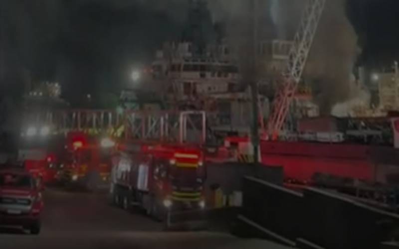 Corpo de Bombeiros combate incêndio em estaleiro em Niterói
