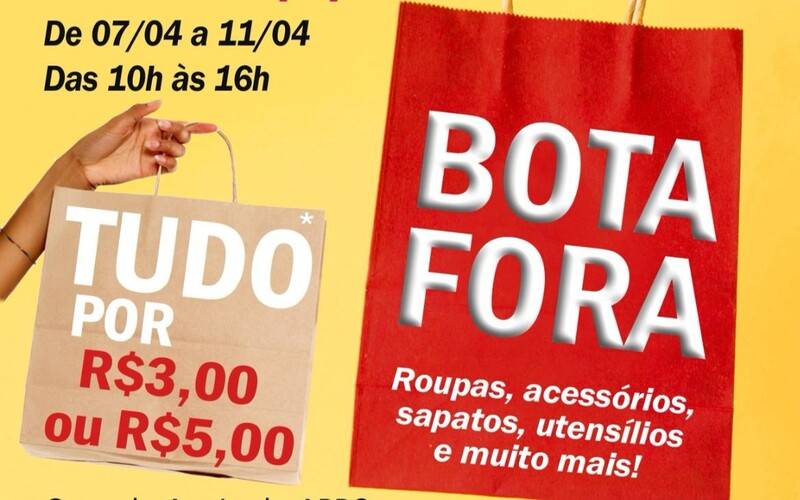 A Associação Petropolitana dos Pacientes Oncológicos (APPO) promove, pela primeira vez, o Bota Fora Bazar da APPO, um evento especial que oferece produtos de qualidade a preços simbólicos. De 7 a 11 de abril, das 10h às 16h, os visitantes poderão encontrar roupas, acessórios, calçados, utensílios domésticos e muito mais por apenas R$3,00 ou R$5,00.